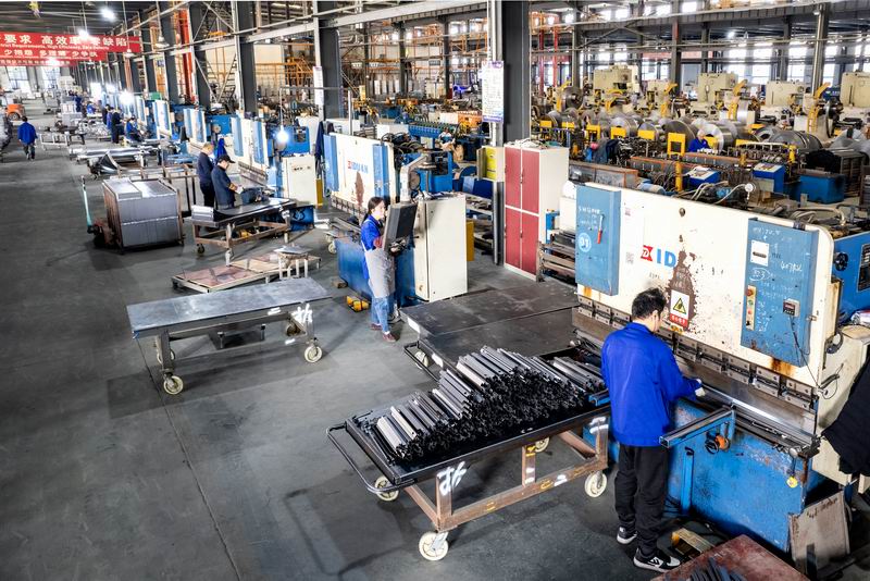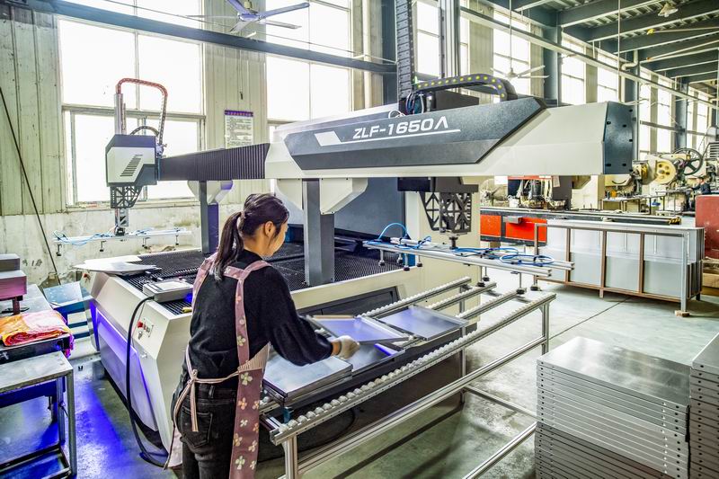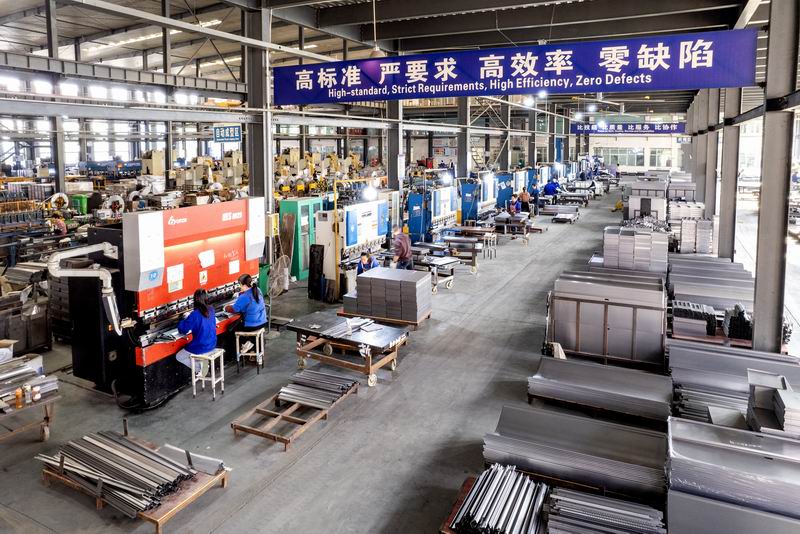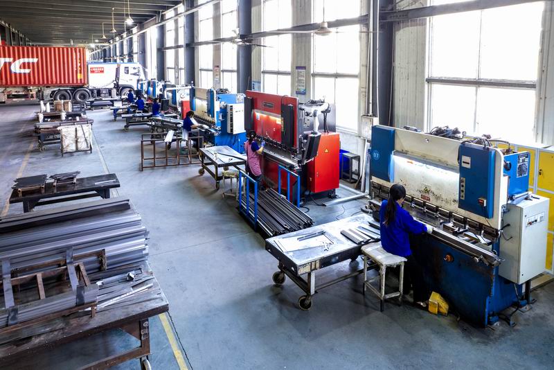 圖為:萊特工廠內(nèi)在折彎生產(chǎn)線上整齊排列的折彎生產(chǎn)設(shè)備