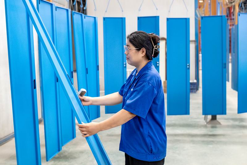圖為:萊特工廠噴涂生產(chǎn)線員工正在對(duì)剛噴涂出爐的產(chǎn)品做質(zhì)量檢查