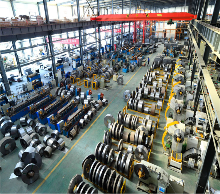 圖為:萊特工廠內生產車間排列整齊的冷軋鋼卷原料群組