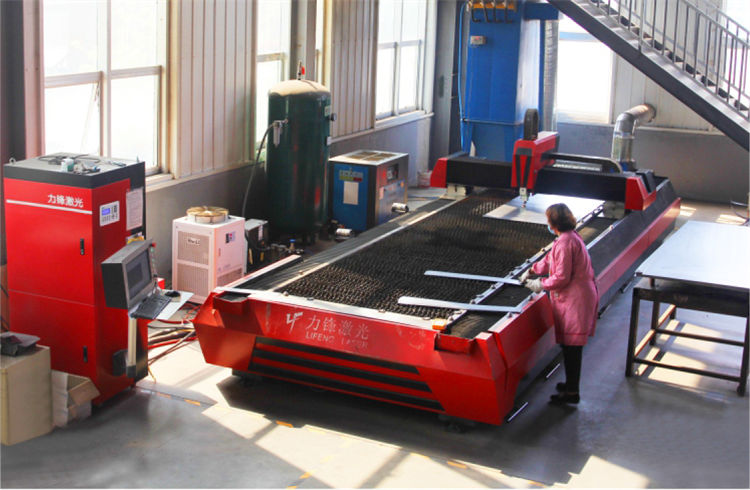 圖為:萊特工廠內生產車間正在運行中的多功能全自動激光切割設備