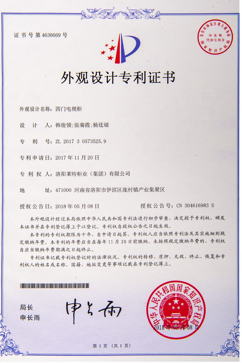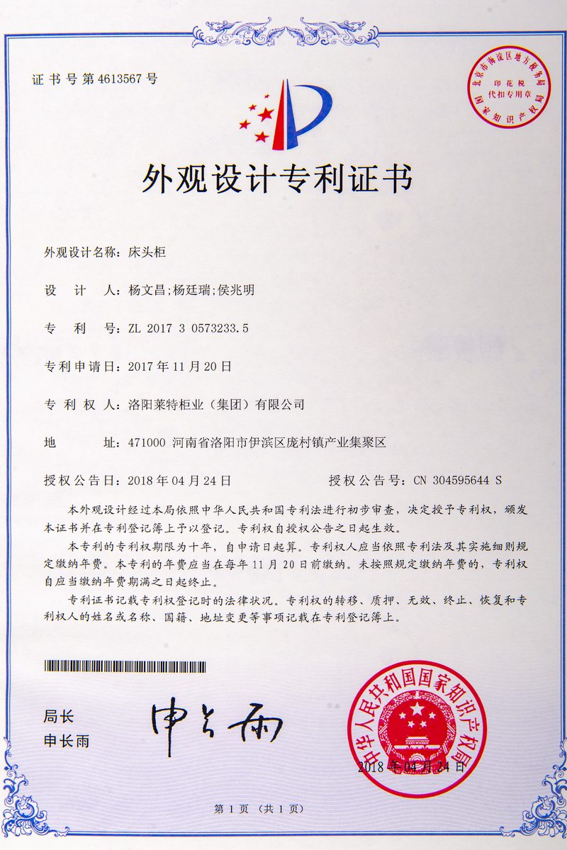 外觀設計專利證書
